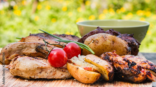Set Of Grilled Meat Chicken Breast Steaks On Bone Steak