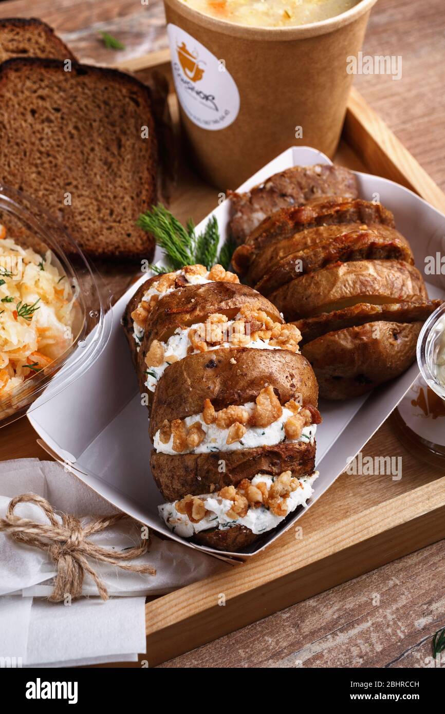 Baked Potatoes Gourmet Garlick Sauce Food Dinner Baked