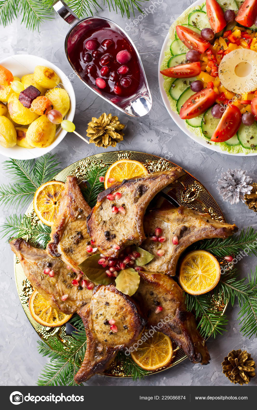 Christmas Dinner With Roasted Meat Steak Christmas Wreath Salad