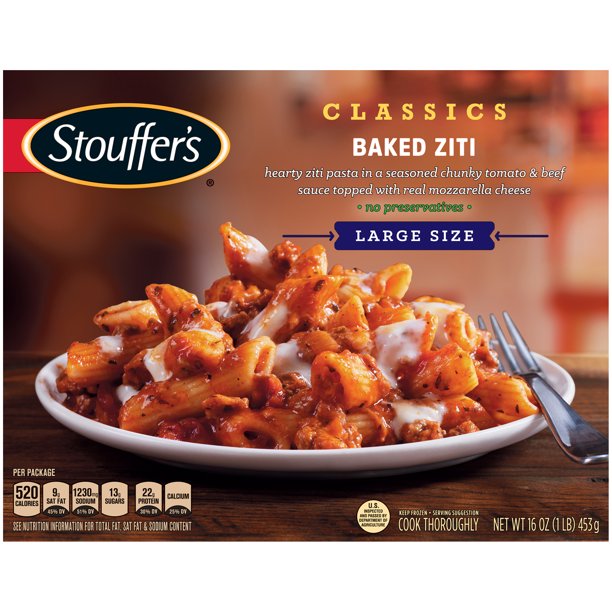 Stouffer S Classics Baked Ziti Large Size Frozen Meal Walmart