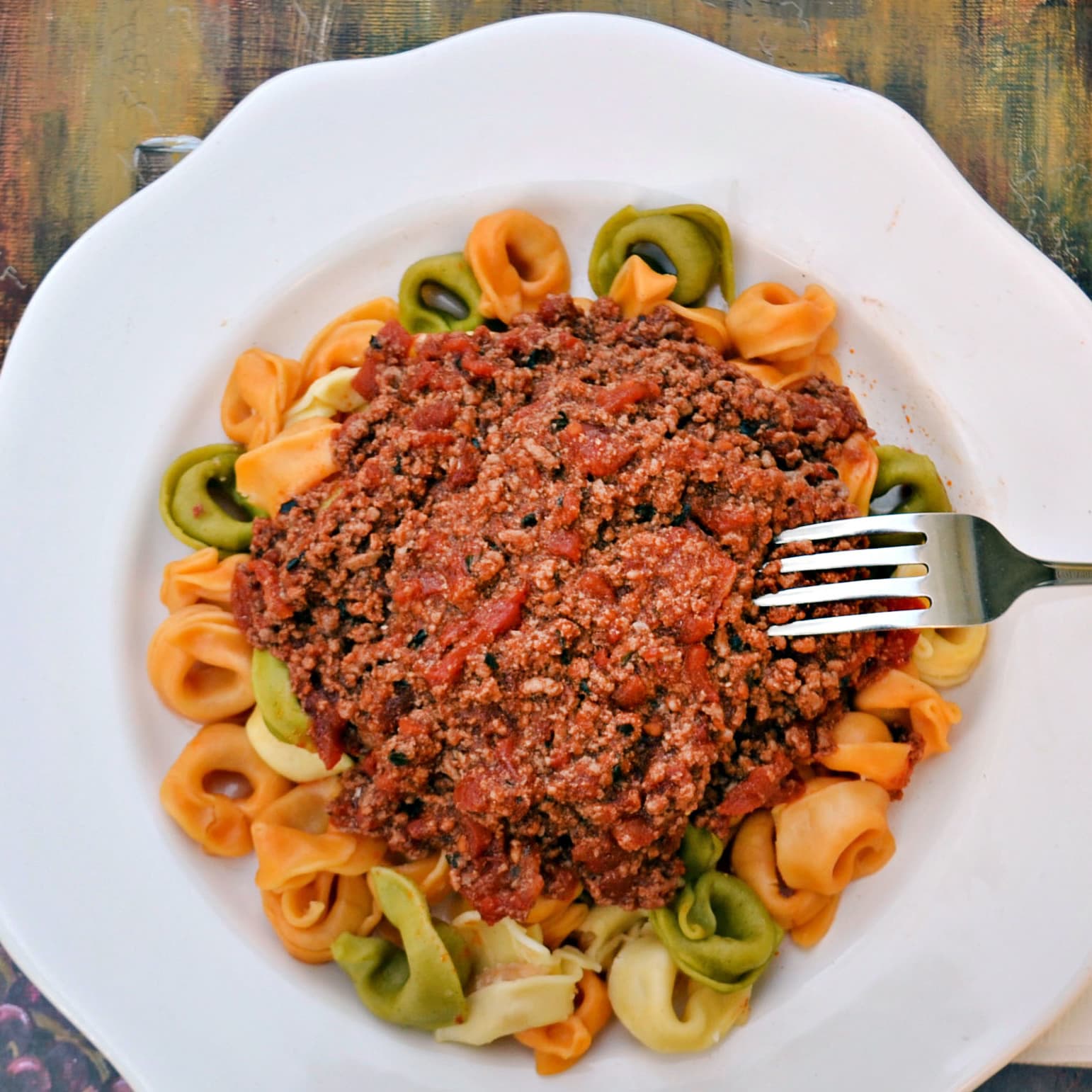 Cheese Tortellini With Meat Sauce Dixie Chik Cooks