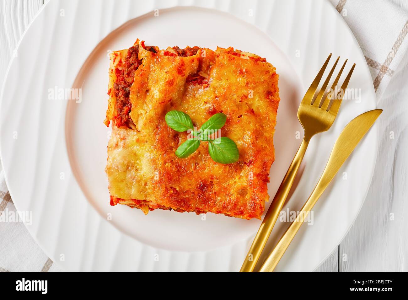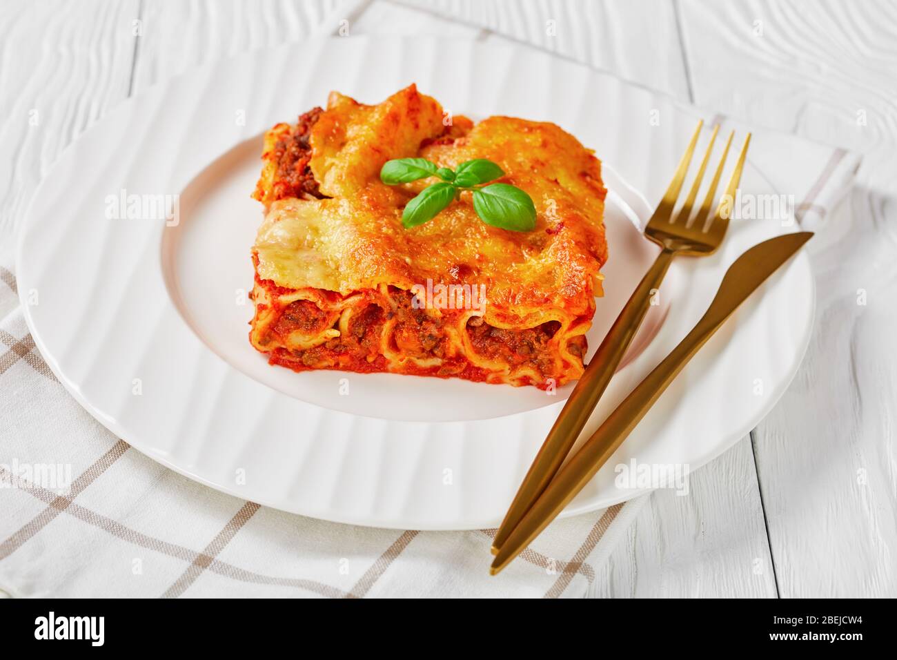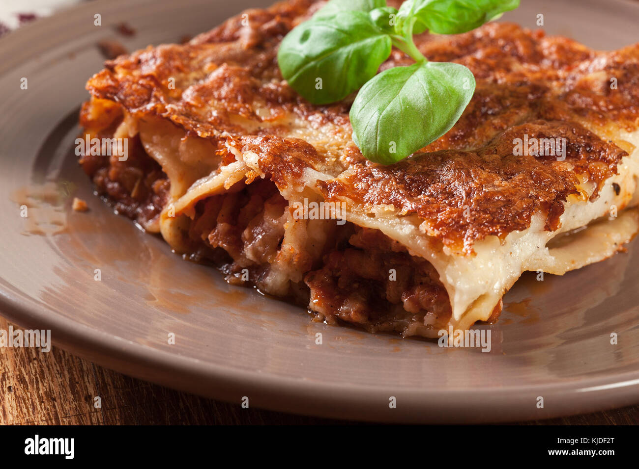 Baked Cannelloni With Minced Meat And Bechamel Sauce On A Plate