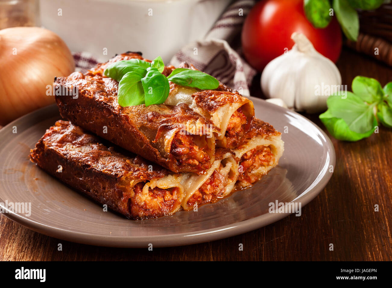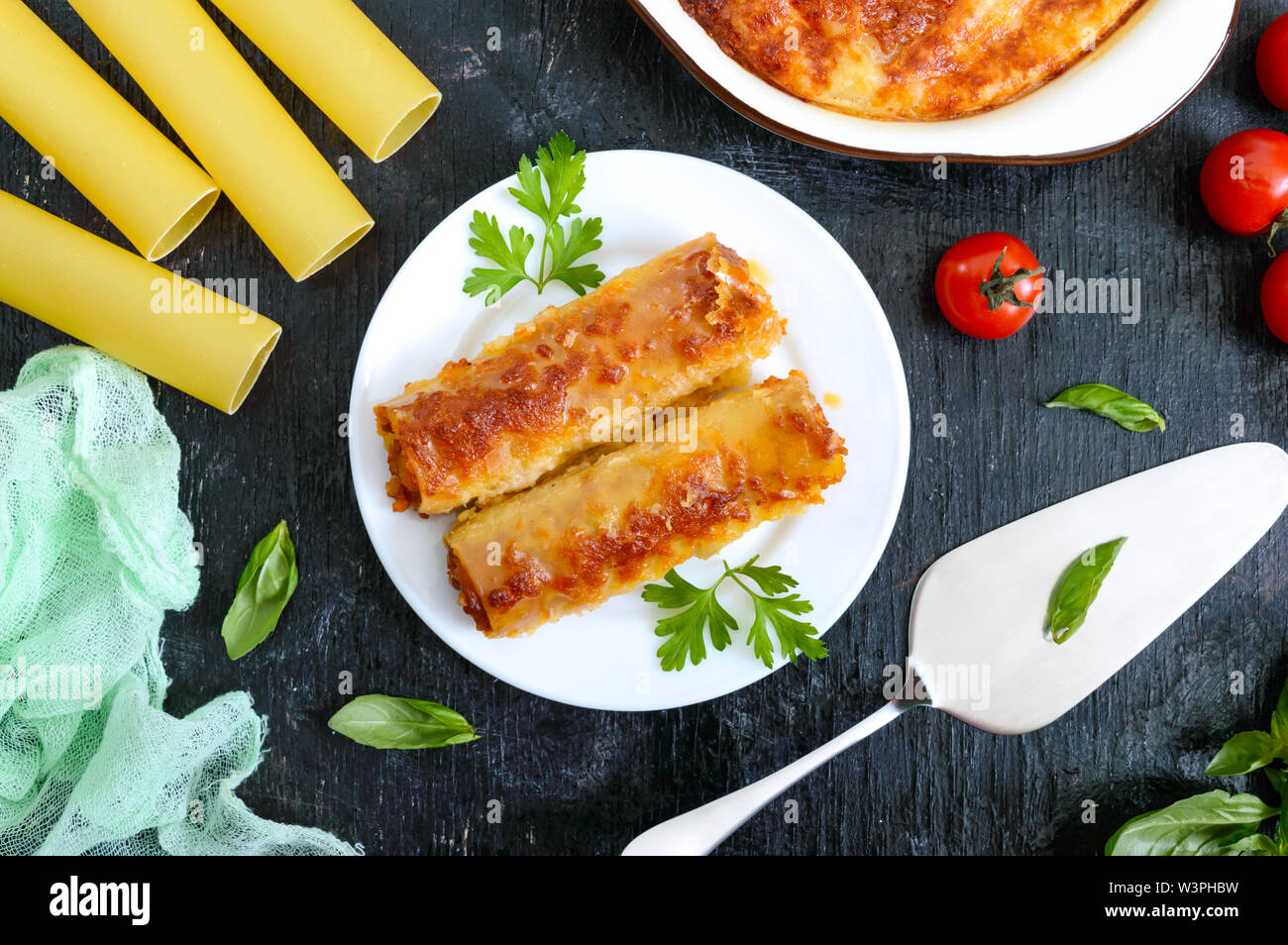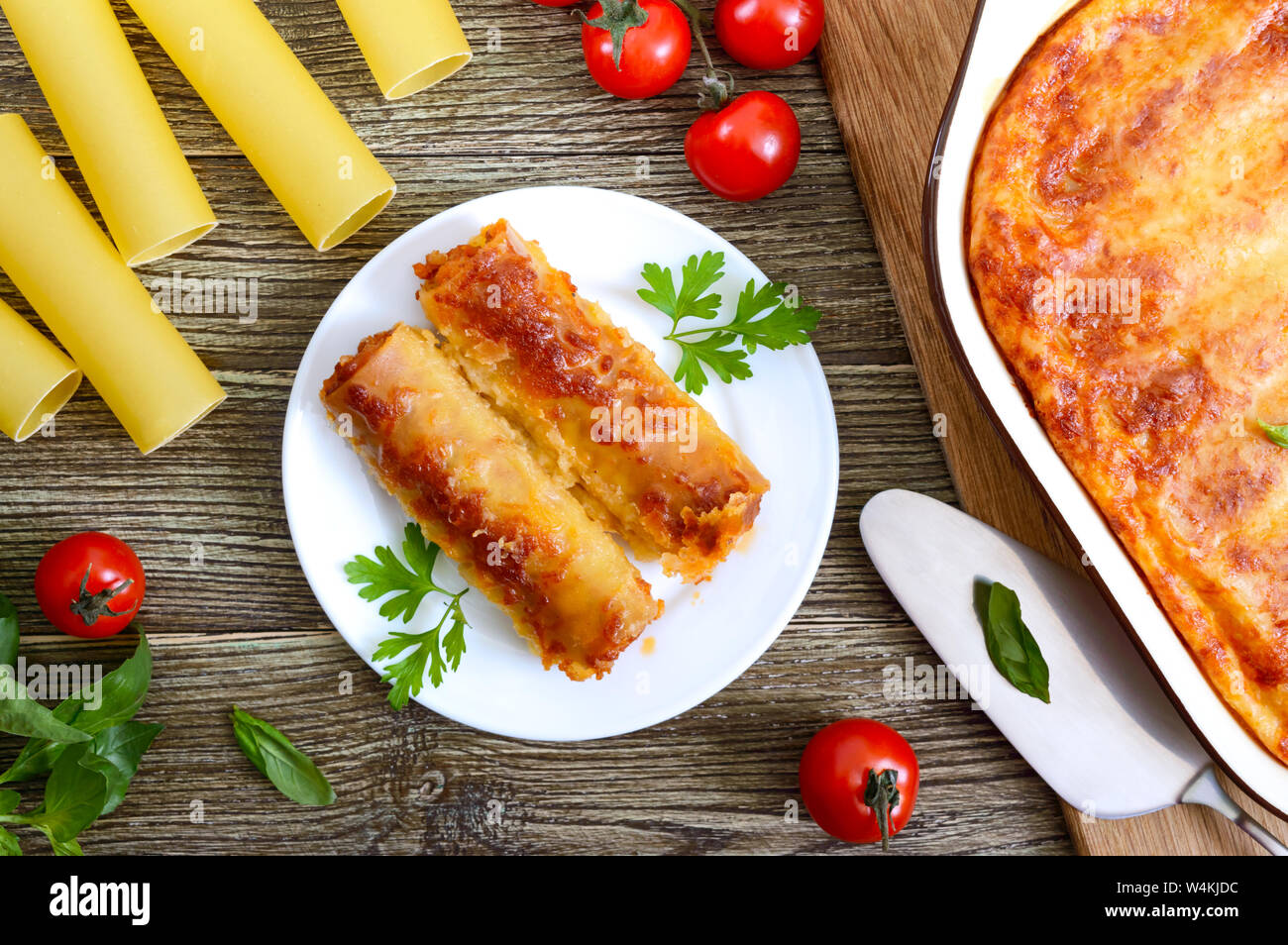 Traditional Italian Pasta Cannelloni Baked Tubes Stuffed With