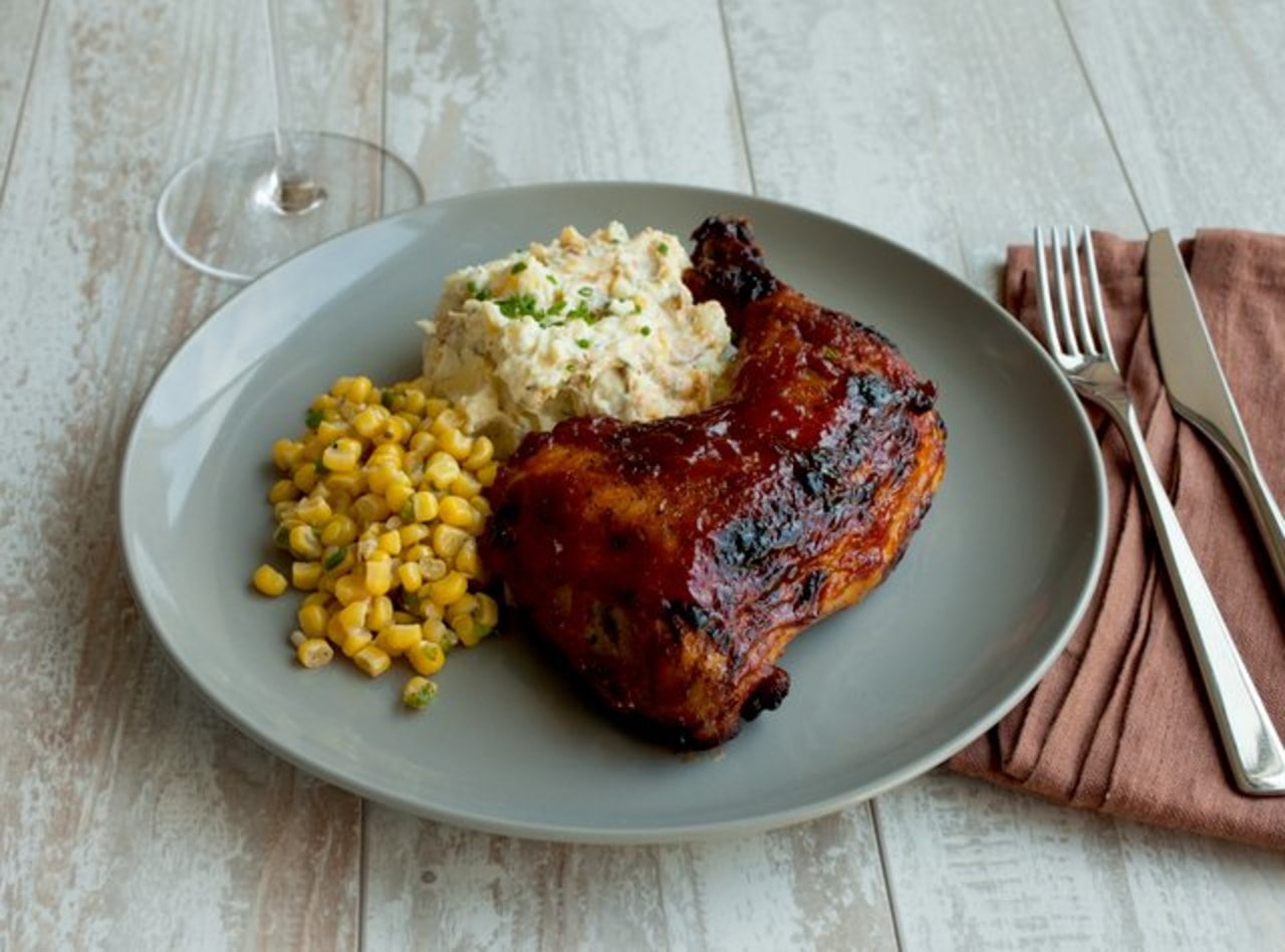 Bbq Chicken With Mashed Potatoes And Corn By Chef Katie Cox