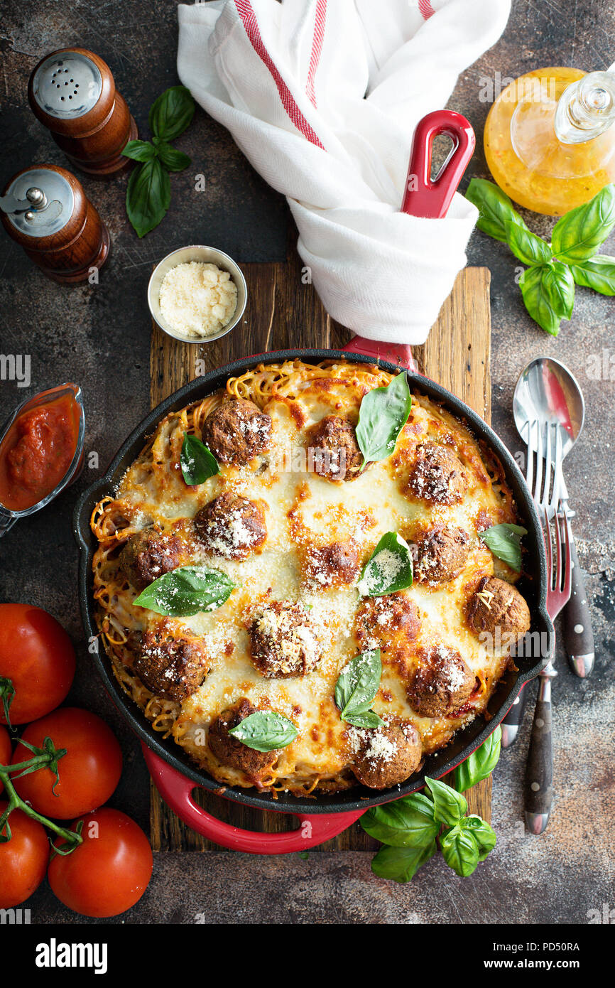Cheesy Baked Meatball Skillet Salt Lavender