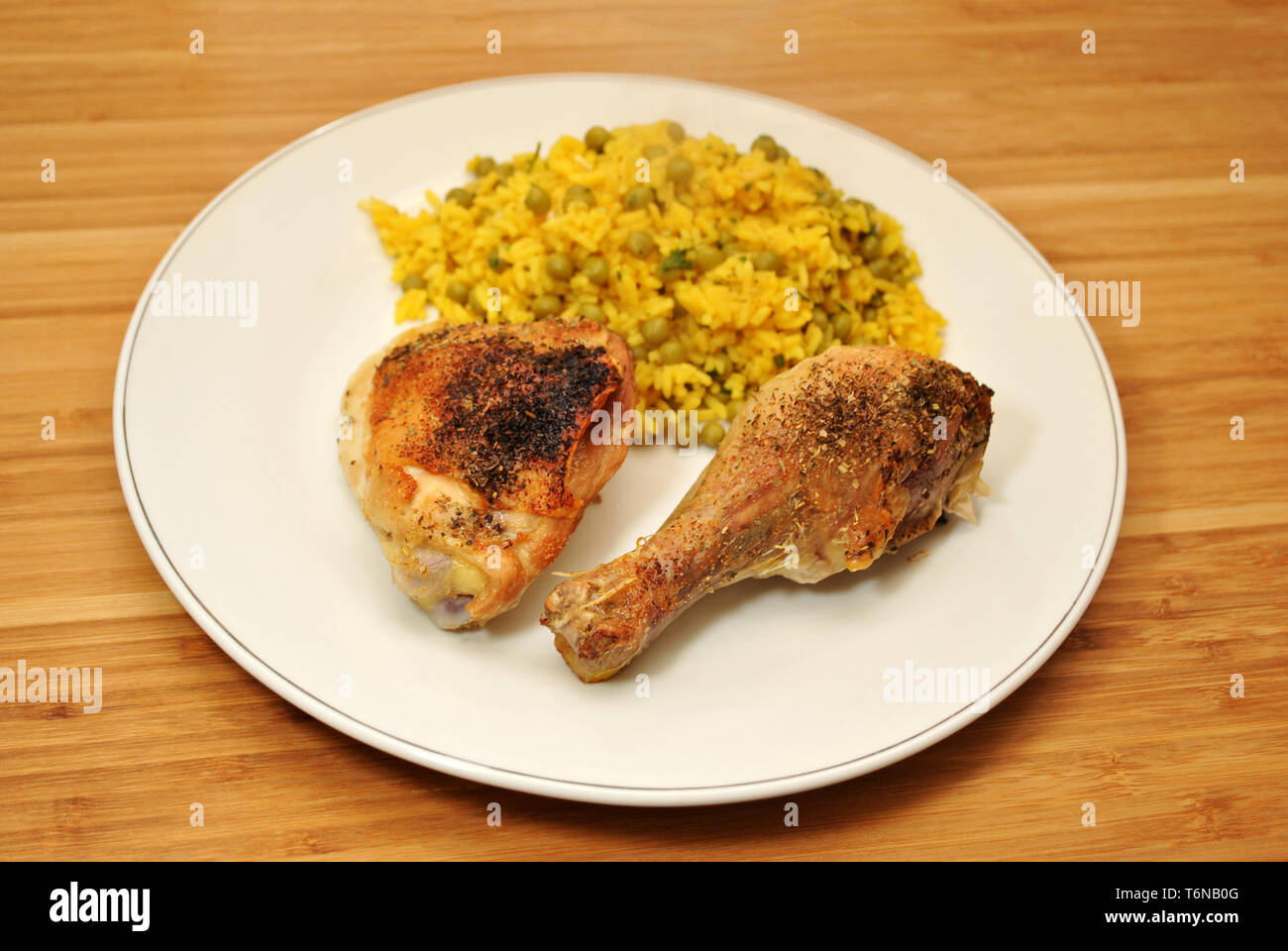 Rice Peas Served With Crispy Baked Chicken Stock Photo