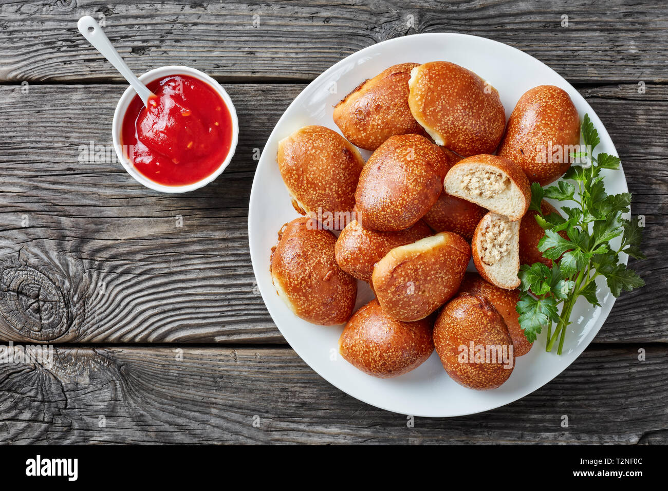 Bread Dough Buns With Ground Chicken Meat Filling Portable Pocket