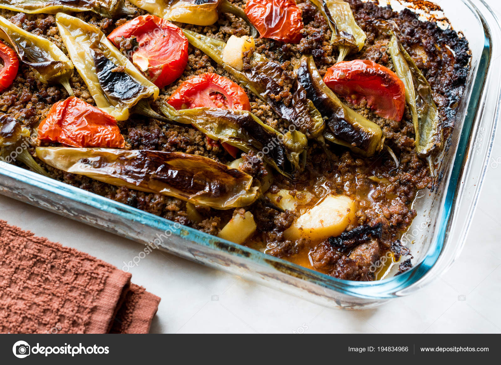 Turkish Food Baked Potato Casserole With Minced Meat Tomatoes And