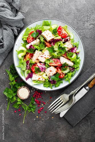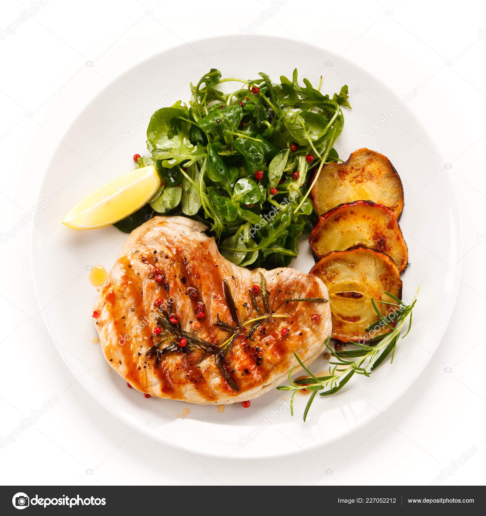 Grilled Chicken Breast And Fresh Vegetable Salad Tomatoes