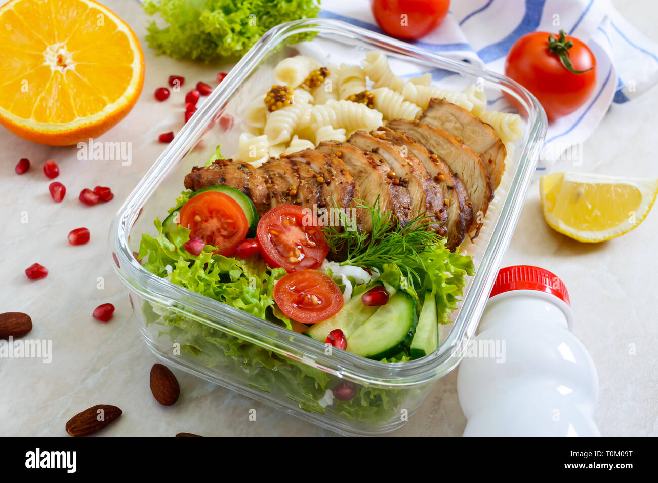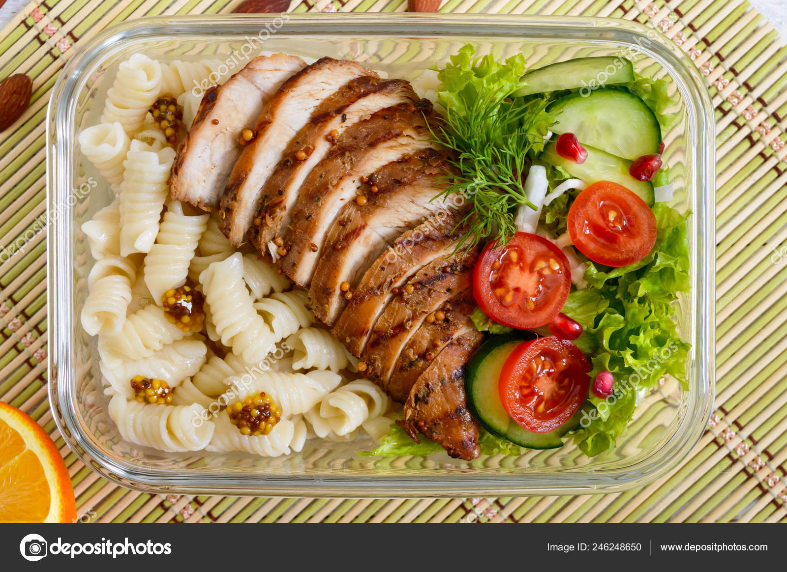 Lunch Boxlunch Box Rotini With Baked Chicken Breast And Salad On