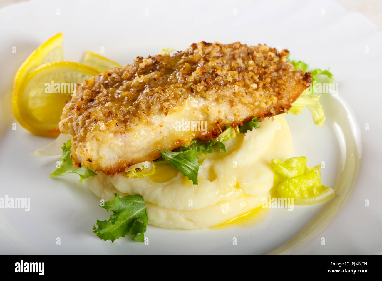 Baked Cod Fish With Mashed Potato Stock Photo 218048789 Alamy