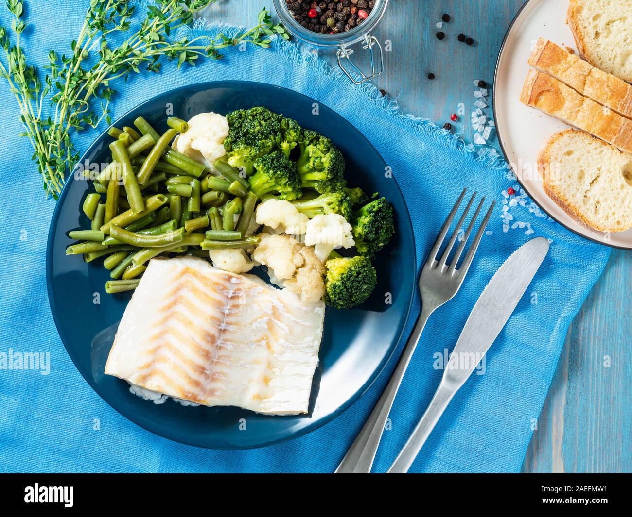 Baked Sea Fish Cod Fillet With Vegetables Broccoli Green Beans
