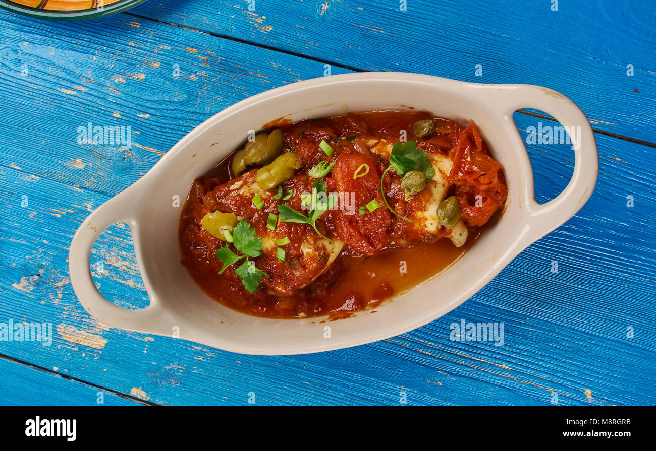 Ingredients 1 large fish whole or cut in thick slices code halibut or any large fish you like 3 tomatoes 1 onion 2 cloves. Place skillet in the oven and bake until the fish is opaque and pulls apart easily with a fork approx 25 30 minutes depending on the thickness of the fillets basting the fish every 10 minutes. Baste the fish every 10 minutes if it is not submerged in the sauce.