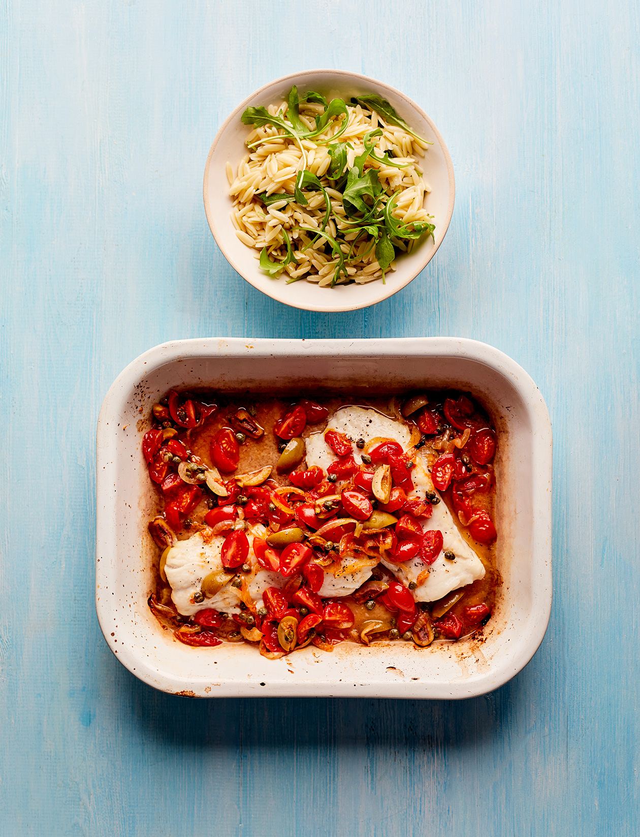Tuscan Baked Fish With Orzo Recipe Sainsbury S Magazine