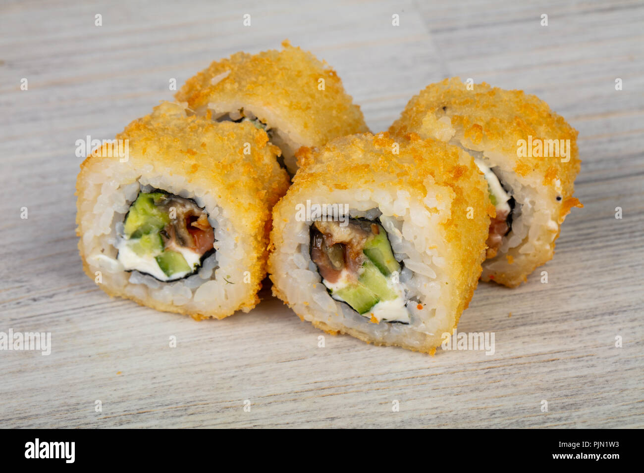 Sushi Japanese Hot Baked Rolls With Fish And Sesame Ginger And