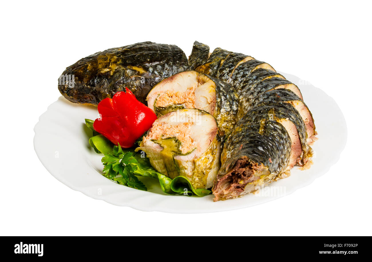 Baked Gefilte Fish Greens On The Plate Isolated On White