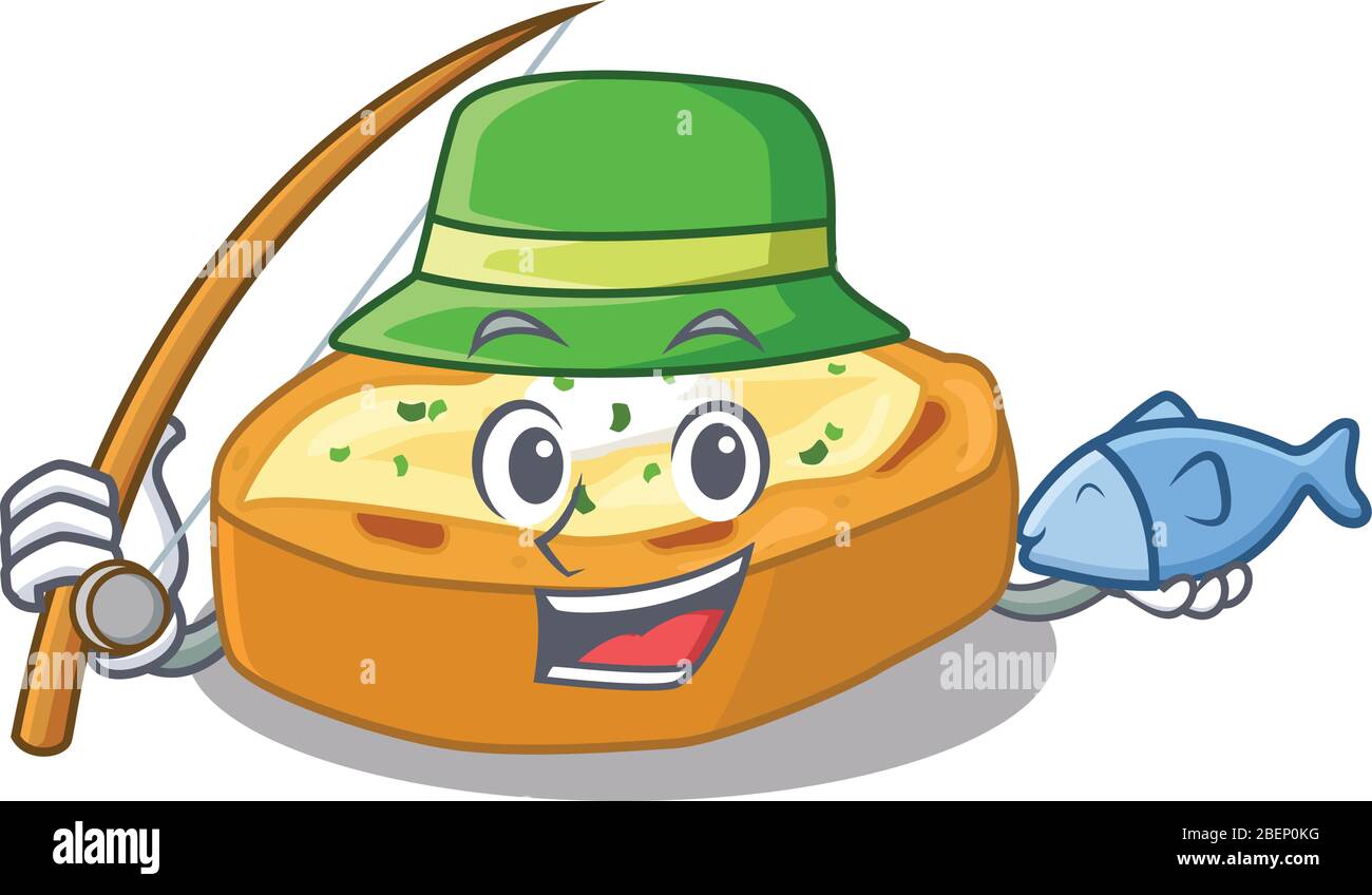 Cartoon Design Concept Of Baked Potatoes While Fishing Stock