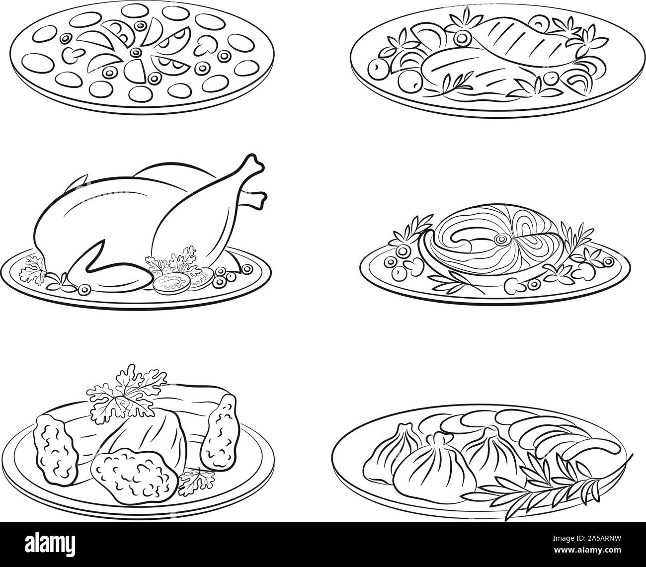 Set Of Food Pictograms Pizza Steak Baked Chicken Fish And More