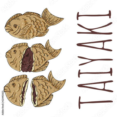 Taiyaki Set Japanese Food Baked Fish Shaped Sweets Vector Buy